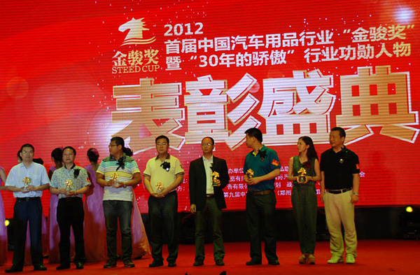 2012年6月26日, 2012首屆汽車用品行業(yè)金駿獎年度頒獎暨30年的驕傲行業(yè)功勛人物表彰大典在鄭州國際會展中心隆重舉行。此活動由中國汽車用品聯合會主辦,第九屆中國汽車用品(鄭州)交易會、鄭州宏達國際汽車用品城、全國各省市汽車用品商/協會等共同協辦。頒獎典禮現場聚集了眾多汽車后市場精英、各大媒體等,共同見證這一行業(yè)盛典。