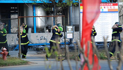 為加強對重大危險源的監(jiān)控,提高政府應(yīng)對重大安全事故和處置突發(fā)事件的能力,檢驗公安、消防、安監(jiān)、環(huán)保等各相關(guān)部門的應(yīng)急綜合能力,廣州從化市在廣州保賜利化工有限公司工廠及其周邊區(qū)域進行了一次重大危險源事故場外區(qū)域應(yīng)急救援預(yù)案演練。廣州市安監(jiān)局周雪芳副局長、從化市方紀章副市長,從化市公安局、應(yīng)急辦、消防大隊、環(huán)保局、衛(wèi)生局、供電局等部門領(lǐng)導(dǎo)以及廣州歐亞氣霧劑與日化用品制造有限公司陳景輝董事長、各相關(guān)社會單位代表觀摩了此次演練。