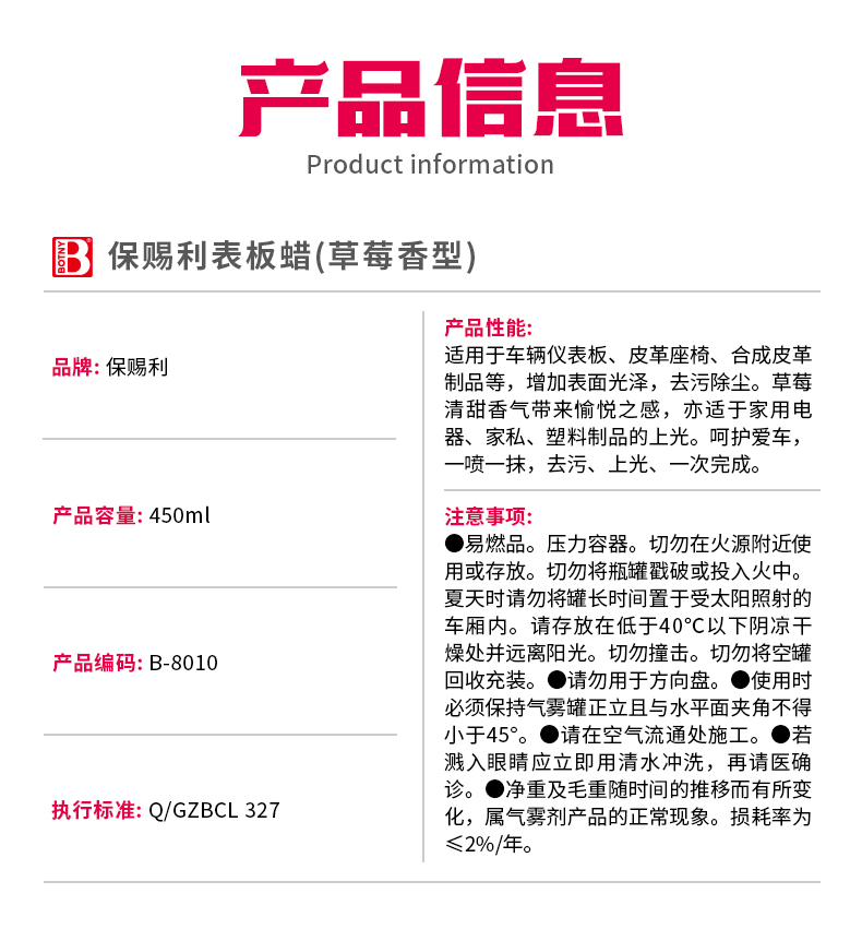 保賜利表板蠟[草莓香型],內(nèi)飾煥新 迷人光澤,清香自然 完
