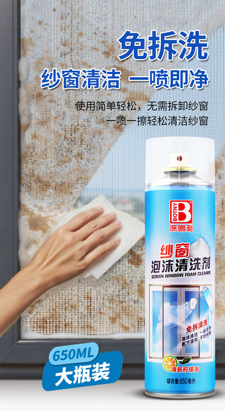 20年家政阿姨用了都說好!保賜利紗窗泡沫清洗劑,免拆免水洗,污垢自動掉下來!